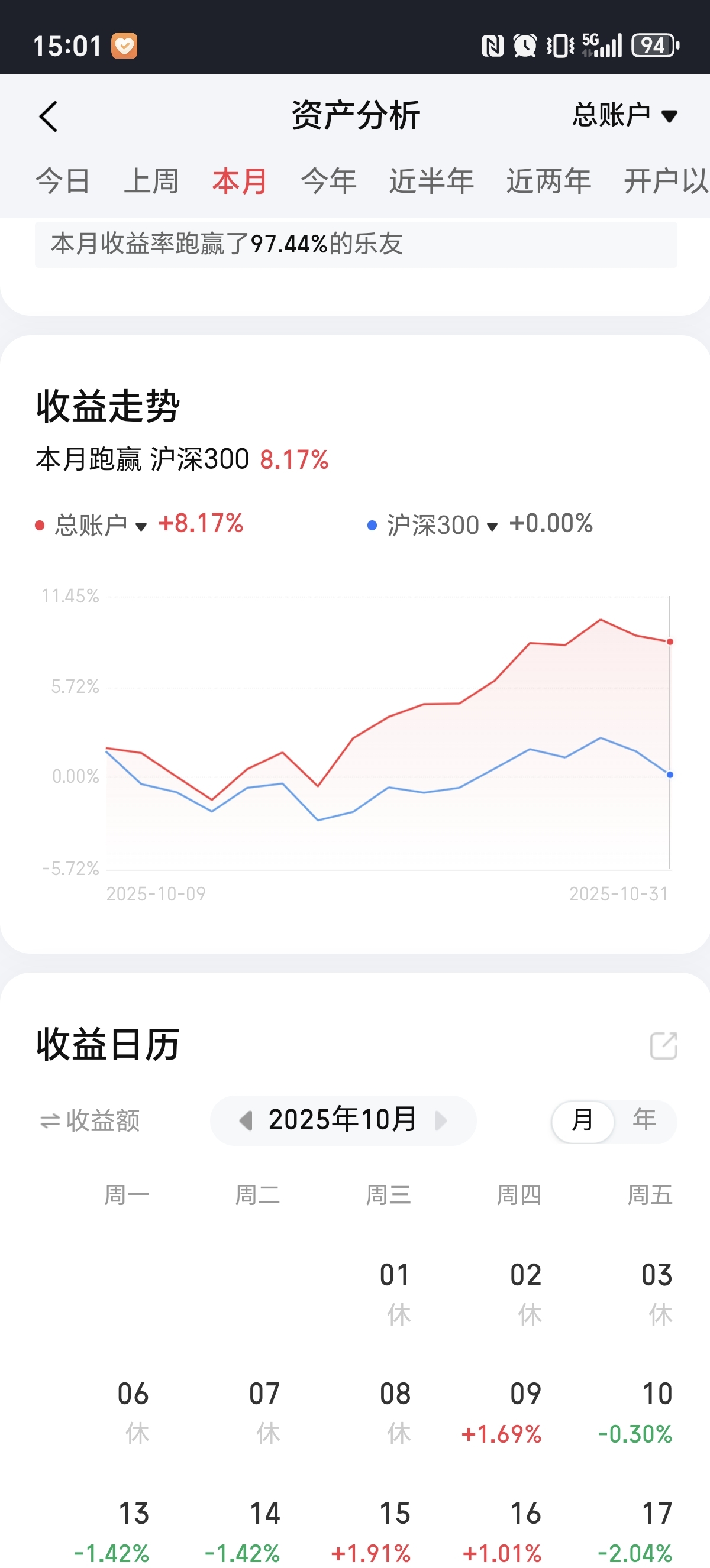 结束10月,大号月线7连阳,小号本年收益率在25%左右。大小号今年收益率目标都是