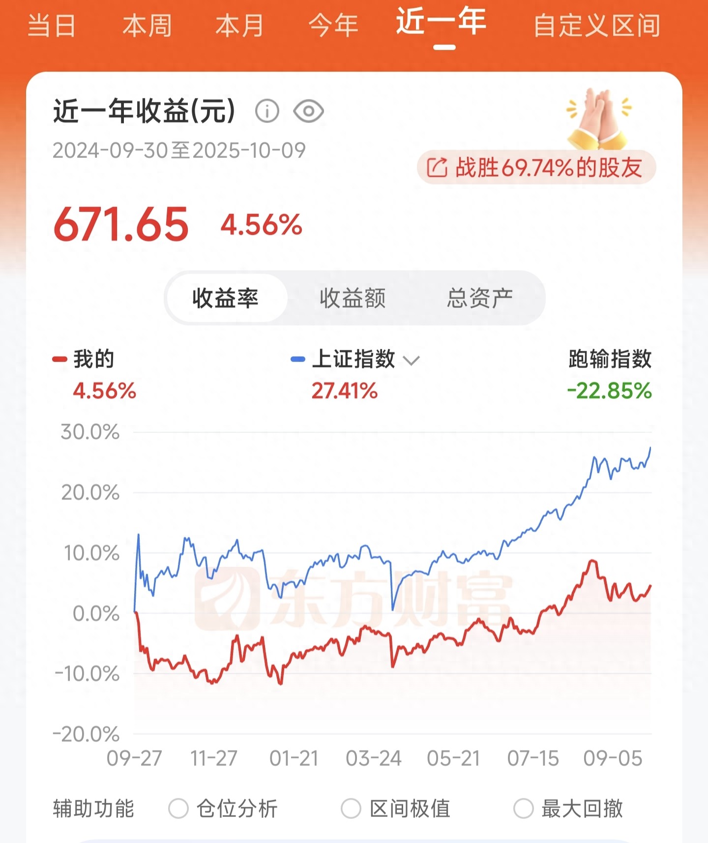 月初统计时,近一年才收获671.65元。