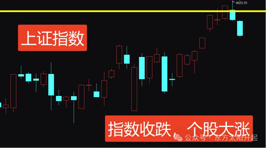 这种诡异的情况说明一个什么事儿呢?说明这一轮上涨它并不是一个普涨的格局,而是由于指数成分股的暴躁带来的上涨,而当一些大市值的成分股下跌的时候,反倒出现了一些#高低切换 的情况。
