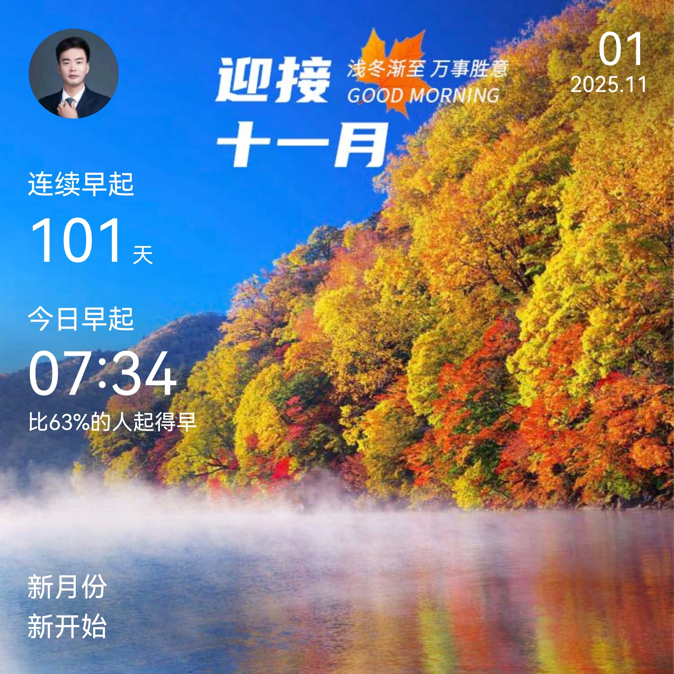 今天是2025年11月1日星期六,农历九月十二,朋友们大家周末早上好!挥手告别1