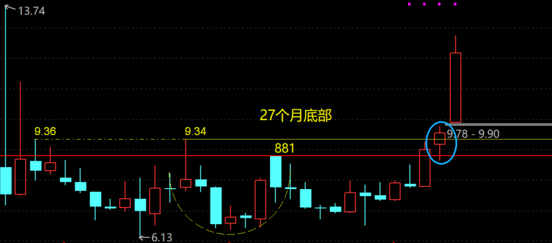 远端次新!我每个牛市最喜欢寻觅的品种。一个企业上市后,募集了大把资金,开始了投资投产的成长之旅,时至今日很多企业手里还依旧握着超募的资金没花完。只要这个企业是良性的主流概念赛道股,在面临上市后的第一个牛市时,也正是它兑现成长红利期,这样的红利期必然会爆发兑现一段疯狂涨幅在股市中。这样的企业个股只要月线形态给我突破底部颈线,我必然要重仓出击。
