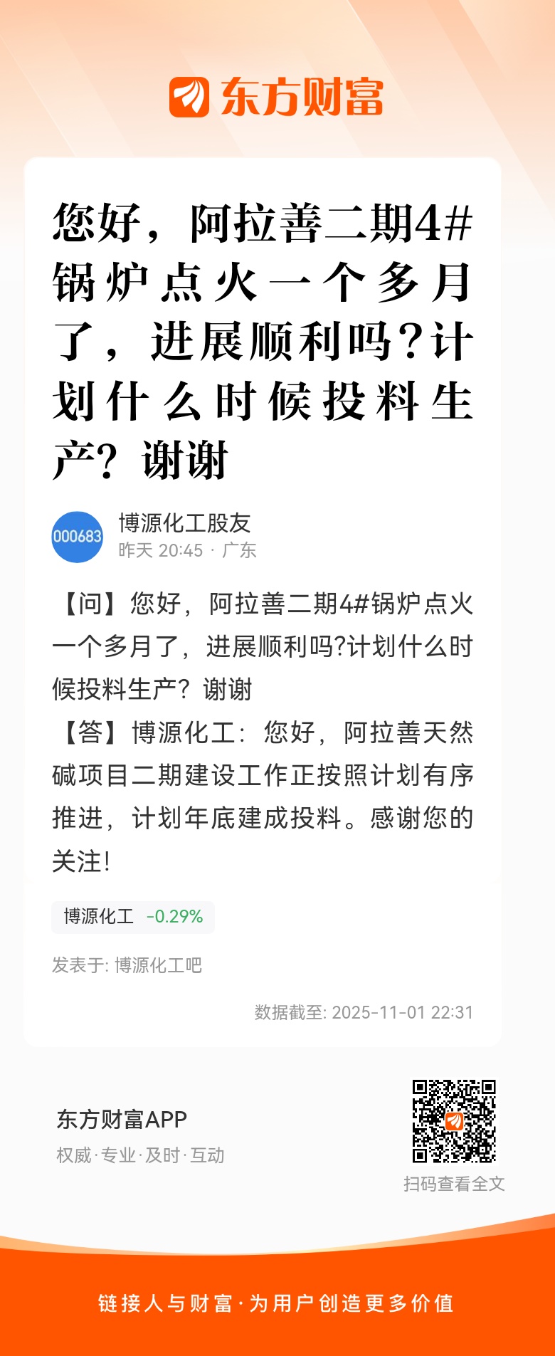 您好,阿拉善二期4#锅炉点火一个多月了,进展顺利吗?计划什么时候投料生产?谢谢