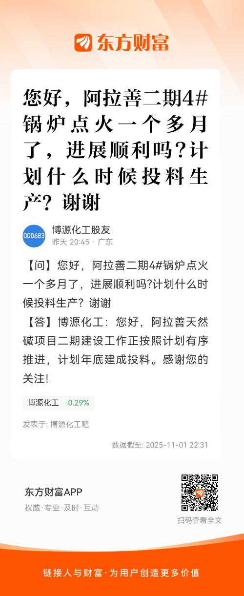 您好,阿拉善天然碱项目二期建设工作正按照计划有序推进,计划年底建成投料。感谢您的关注!