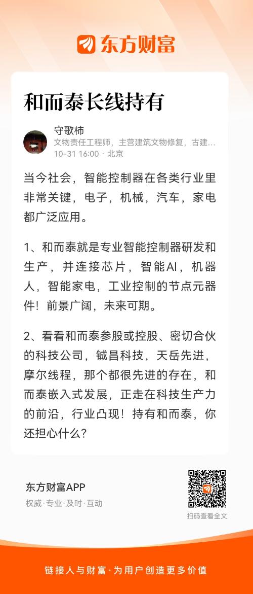 2、看看和而泰参股或控股、密切合伙的科技公司,铖昌科技,天岳先进,摩尔线程,那个都很先进的存在,和而泰嵌入式发展,正走在科技生产力的前沿,行业凸现!持有和而泰,你还担心什么?