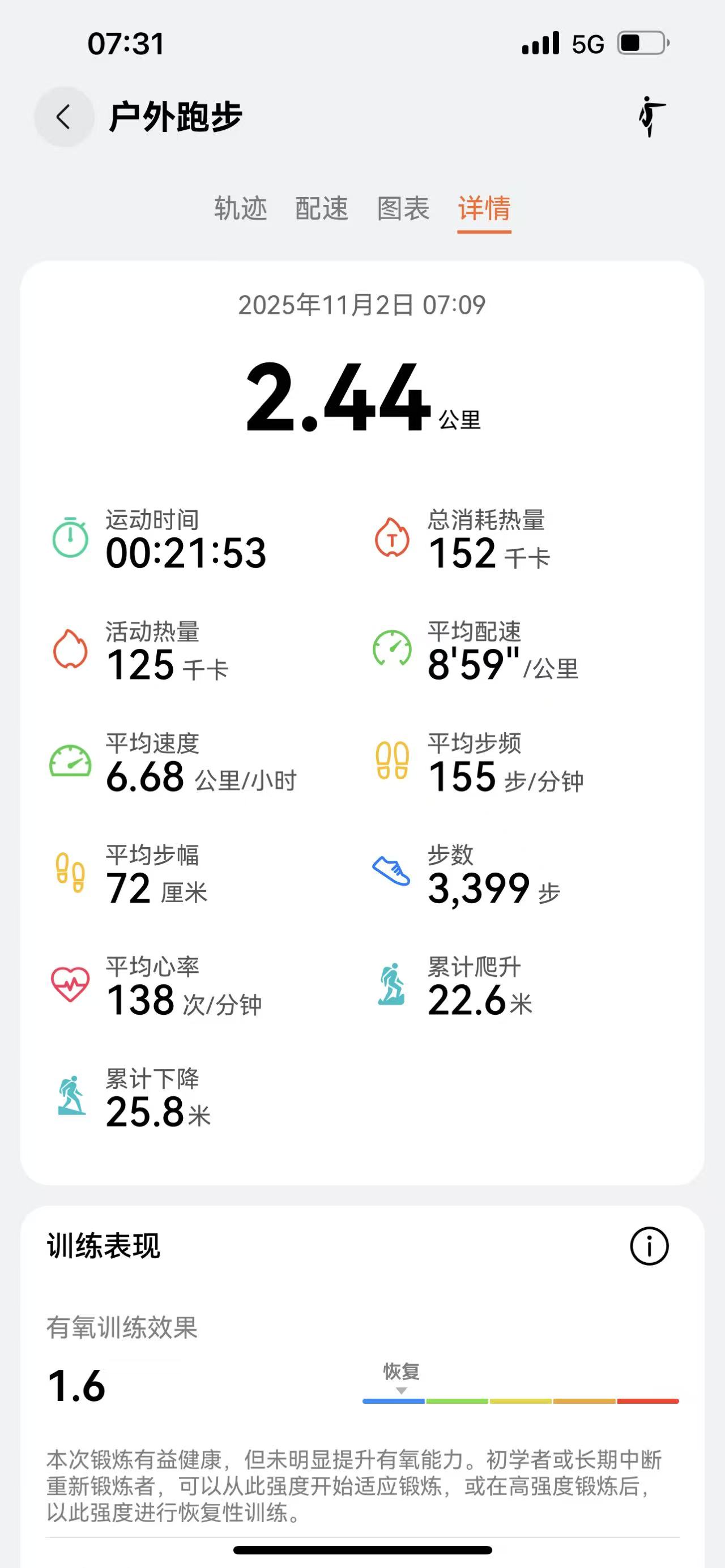 慢跑:2.44公里,累计慢跑:1134.32公里