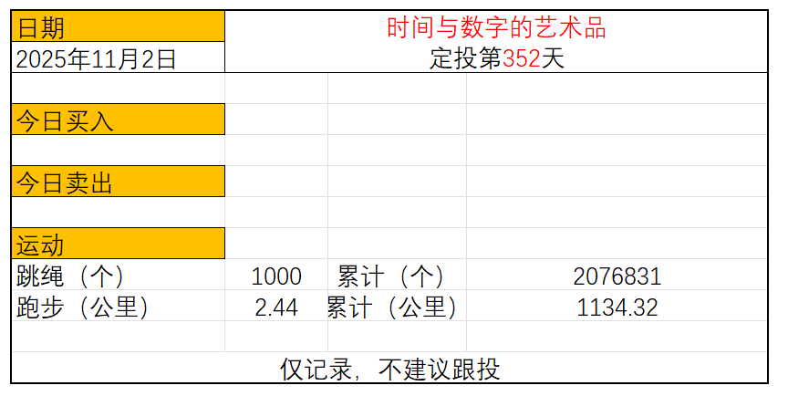 运动与投资第354天2025年11月2日今日定投:周末,没有定投跳绳:1000个