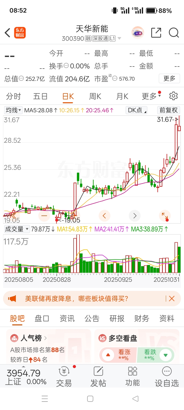 天华哥这下发达了,有宁德大哥的青睐,又是多年的老朋友,消息面一出,必定一飞冲天,形态上依然走势向上,多头强势,成交量放大,兄弟们,周一上车起飞坐稳扶好!!