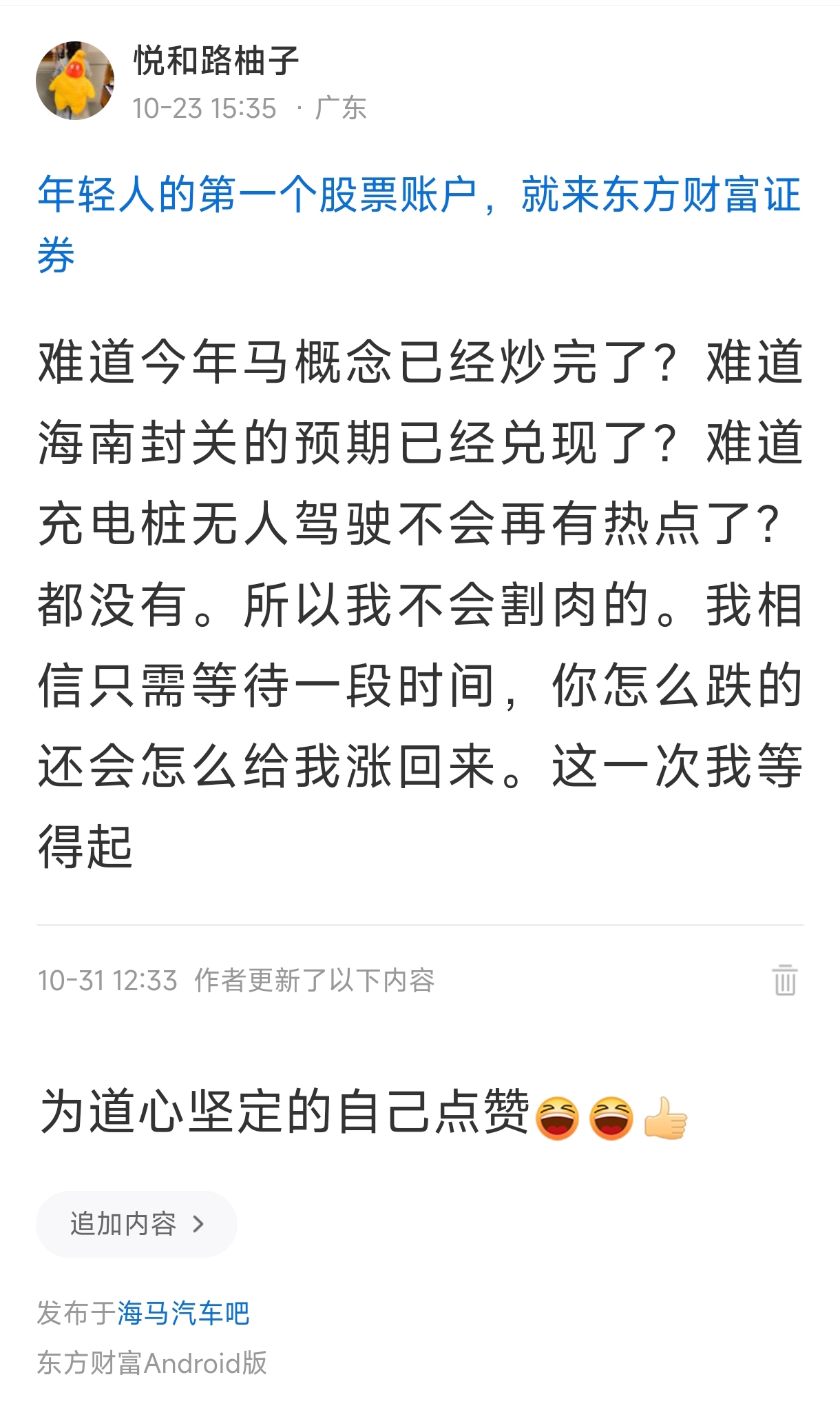 温馨提示: 1.根据《证券法》规定,禁止编造、传播虚假信息或者误导性信息,扰乱证券市场;2.用户在本社区发表的所有资料、言论等仅代表个人观点,与本网站立场无关,不对您构成任何投资建议。用户应基于自己的独立判断,自行决定证券投资并承担相应风险。《东方财富社区管理规定》