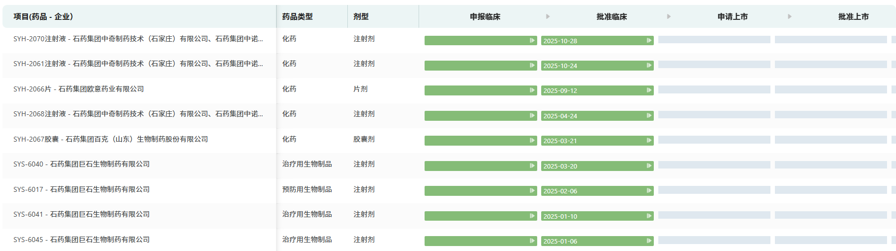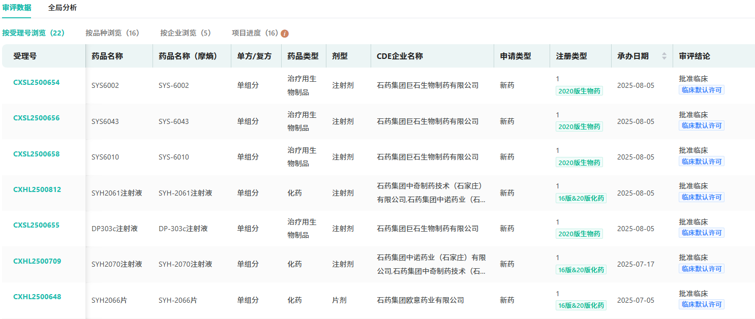 截至目前,石药集团(含子公司)有9款1类心血管系统药物获批临床。今年以来,石药集团创新药研发成果丰硕,累计有16款(化药+生物药)1类新药获批临床。