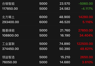 - 隆基绿能(601012):21.760元,+3.08%(强势领涨)