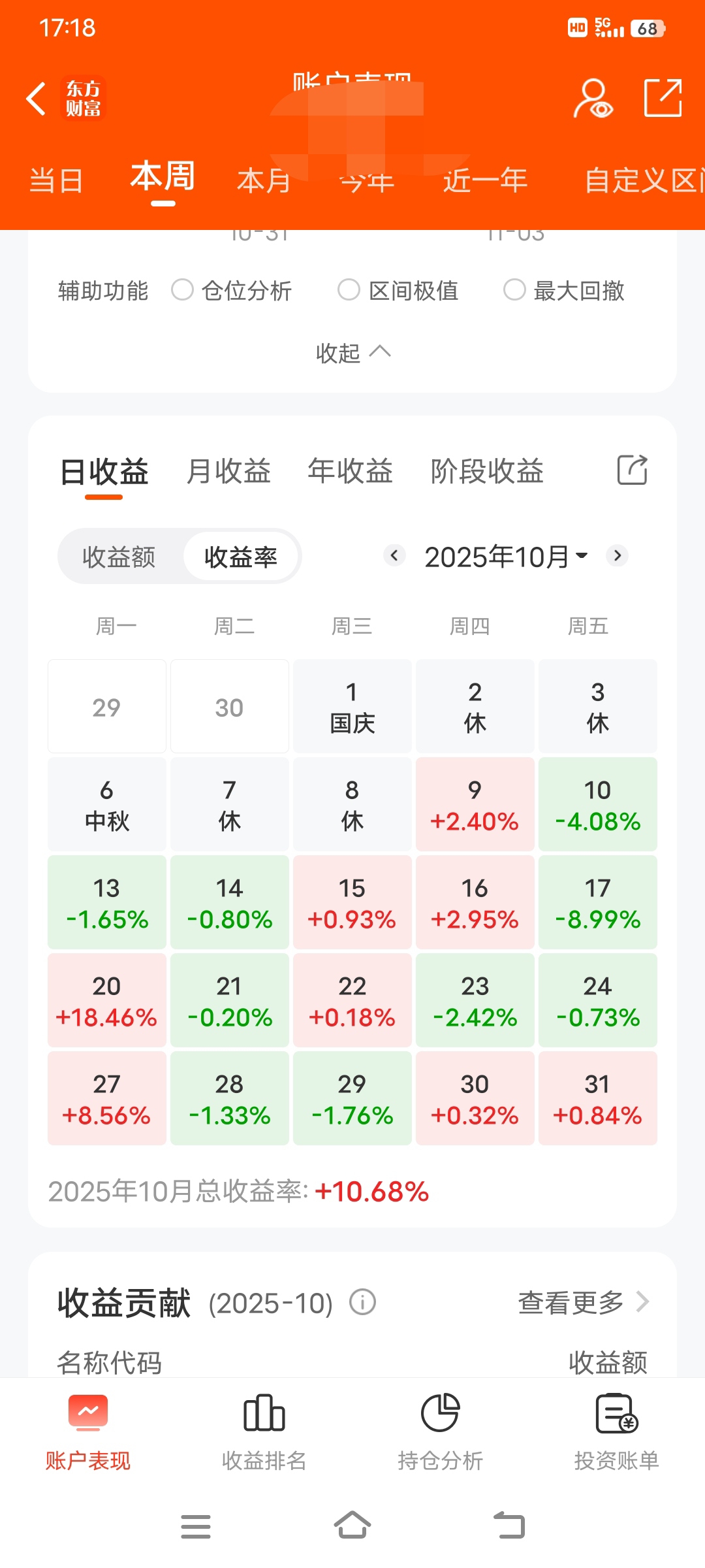 10月份收益比9月份少了6个点。