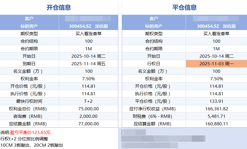 深信服 期权合约1M,期权费7.5W,期权持仓19天,盈利16.08W,净赚8.58W