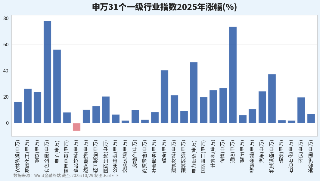 毕竟,2025年的A股,属于很典型的结构性牛市。从下面申万31个一级行业指数的涨幅来看,超过30%的也不多,如果不能捕捉到这些行业,很难在业绩上特别出彩。而年轻的基金经理们更倾向于行业集中,自然就更有希望捕捉到大牛行业。