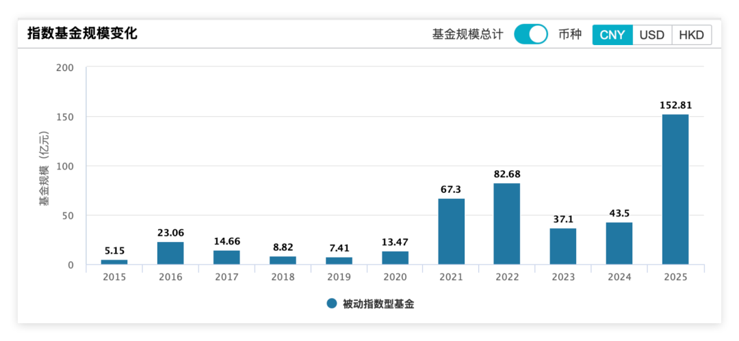 至于中证钢铁,场内场外其实就是一只钢铁ETF(515210.SH)和他的联接,作为反内卷的重要标的,即使经历了这波2025年牛市,依然50亿元都不到。
