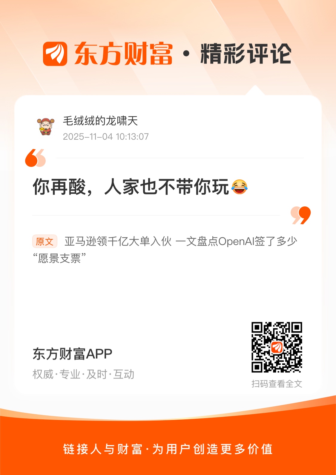 你再酸,人家也不带你玩我在《亚马逊领千亿大单入伙一文盘点OpenAI签了多少“愿