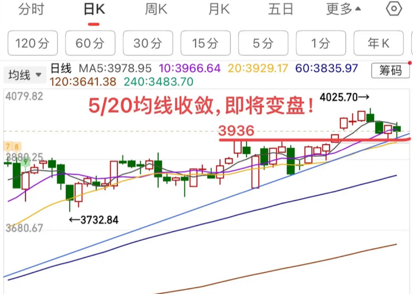 5/20日线靠拢,变盘窗口近了!