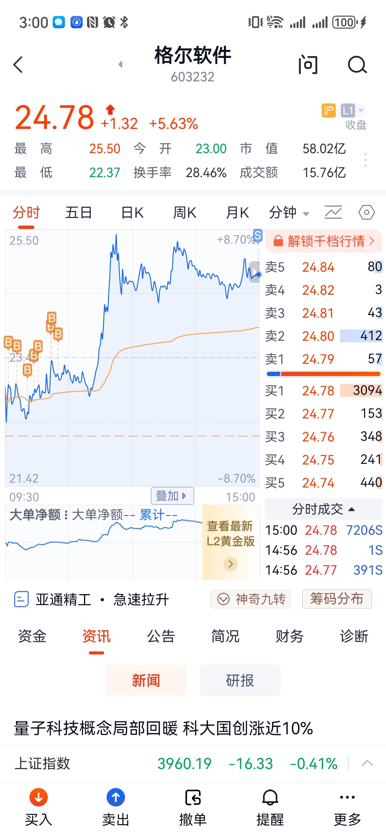 当热点板块有银行时,大家都不会太好,今天我自己股票大涨,达华智能涨停,格尔软件水下加仓尾盘做t10个点,看好达华智能明天继续涨停,腿太短了,不然今天应该可以20cm,大盘明天不会太差了,下面有支撑。希望大家股票大涨!#炒股日记# @格尔软件