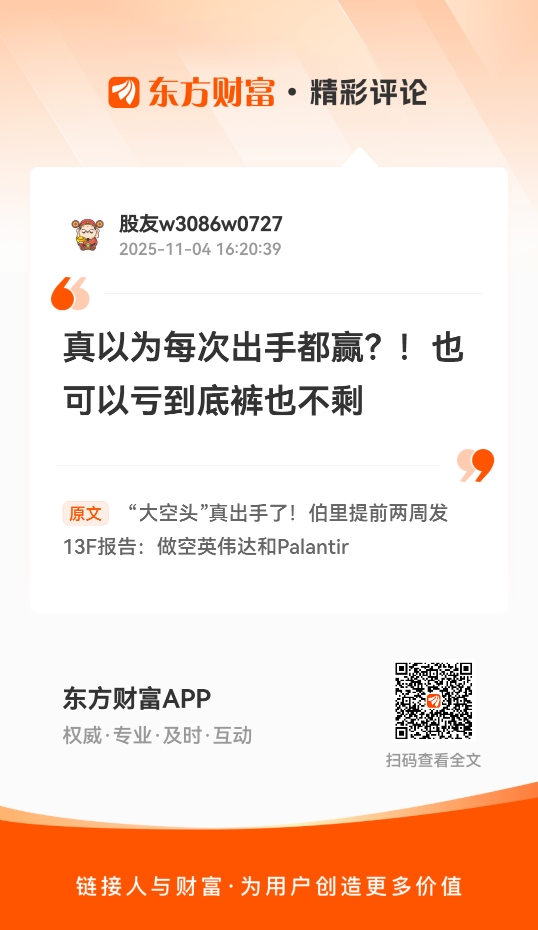 真以为每次出手都赢?!也可以亏到底裤也不剩 我在《“大空头”真出手了!伯里提前两周发13F报告:做空英伟达和Palantir》的评论获得了大家的关注。
