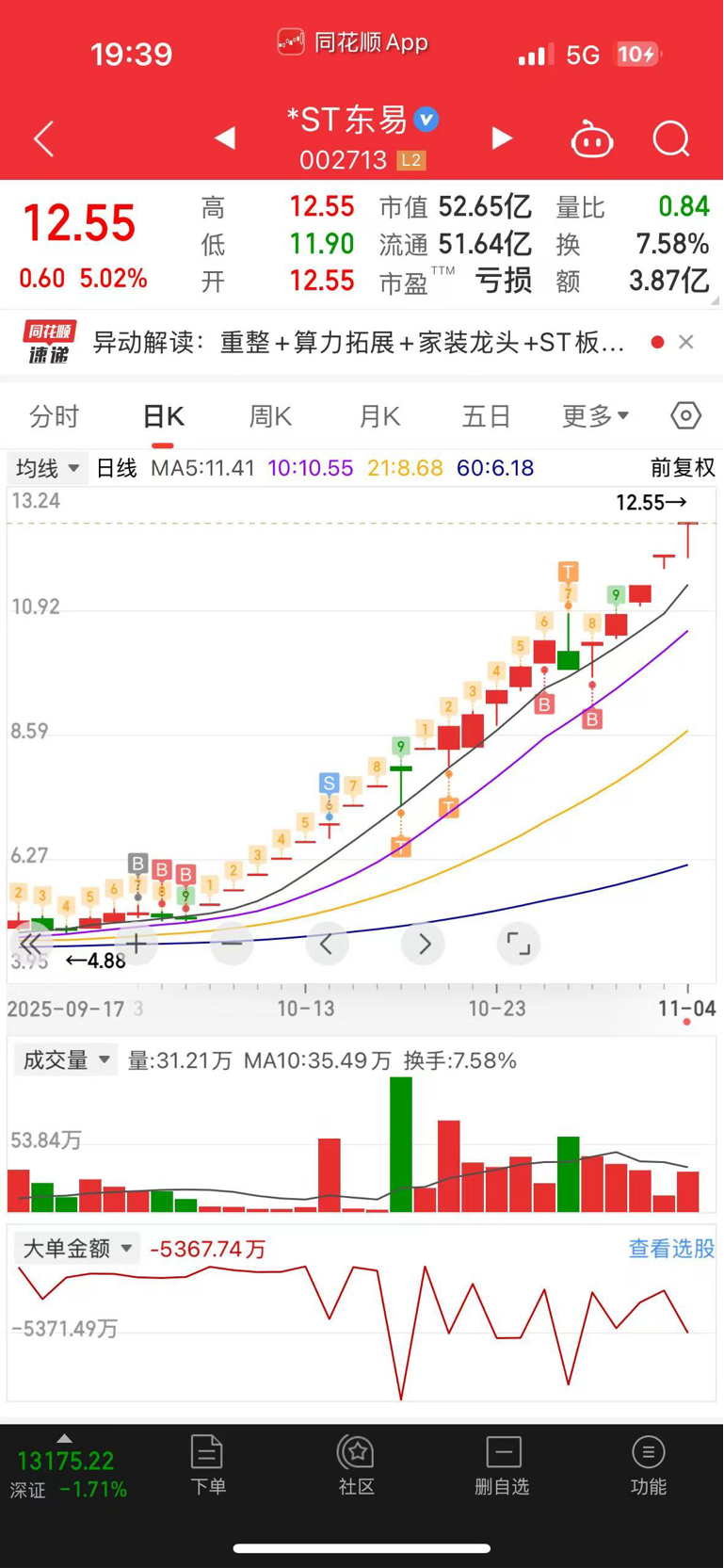 今年终于博到了一个牛股,每天都处在上涨的恐慌之中,不知道何时才是个头哟