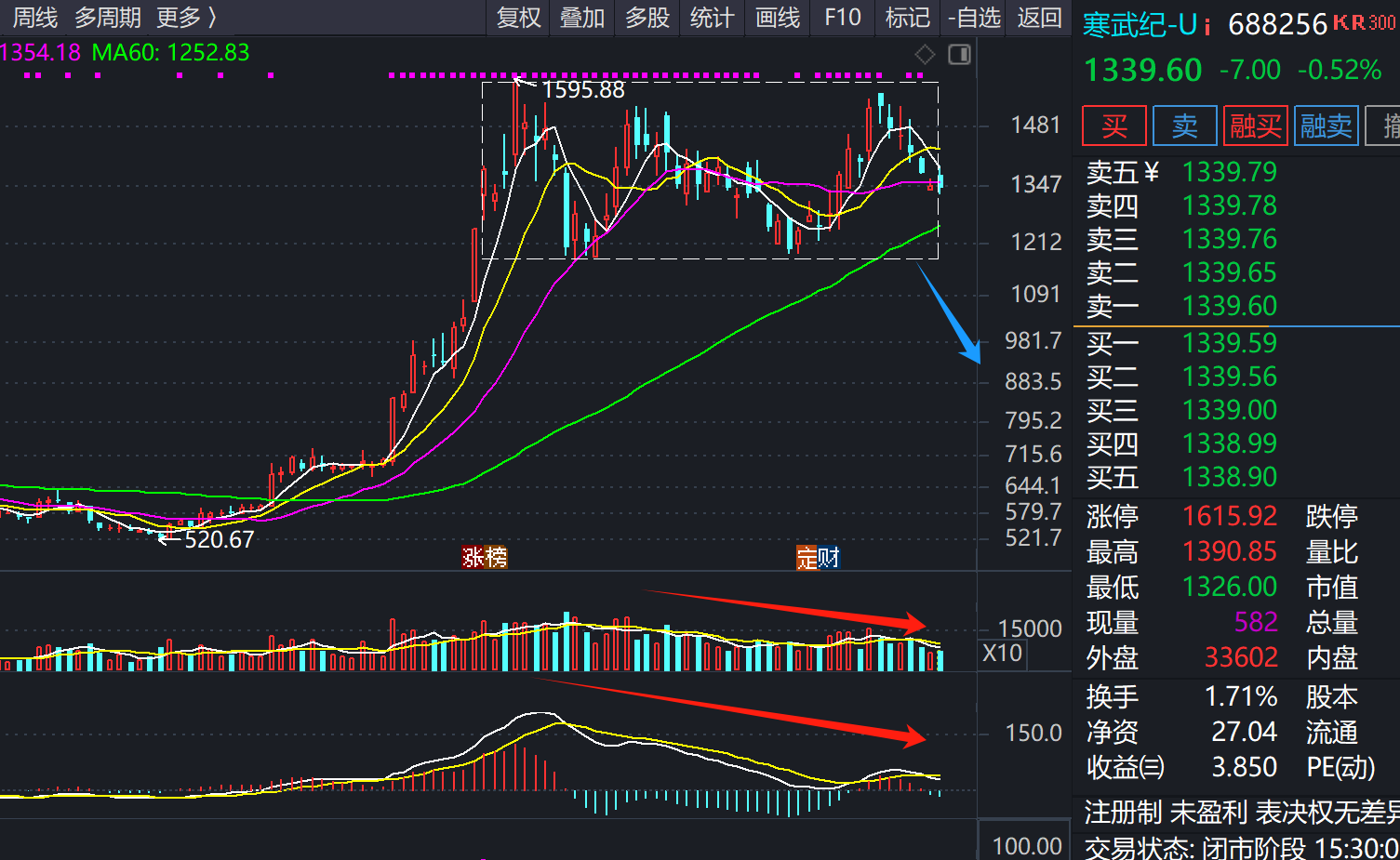 【个股技术分析】$寒武纪-U(688256),当前有走头部结构的迹象,且有明确的