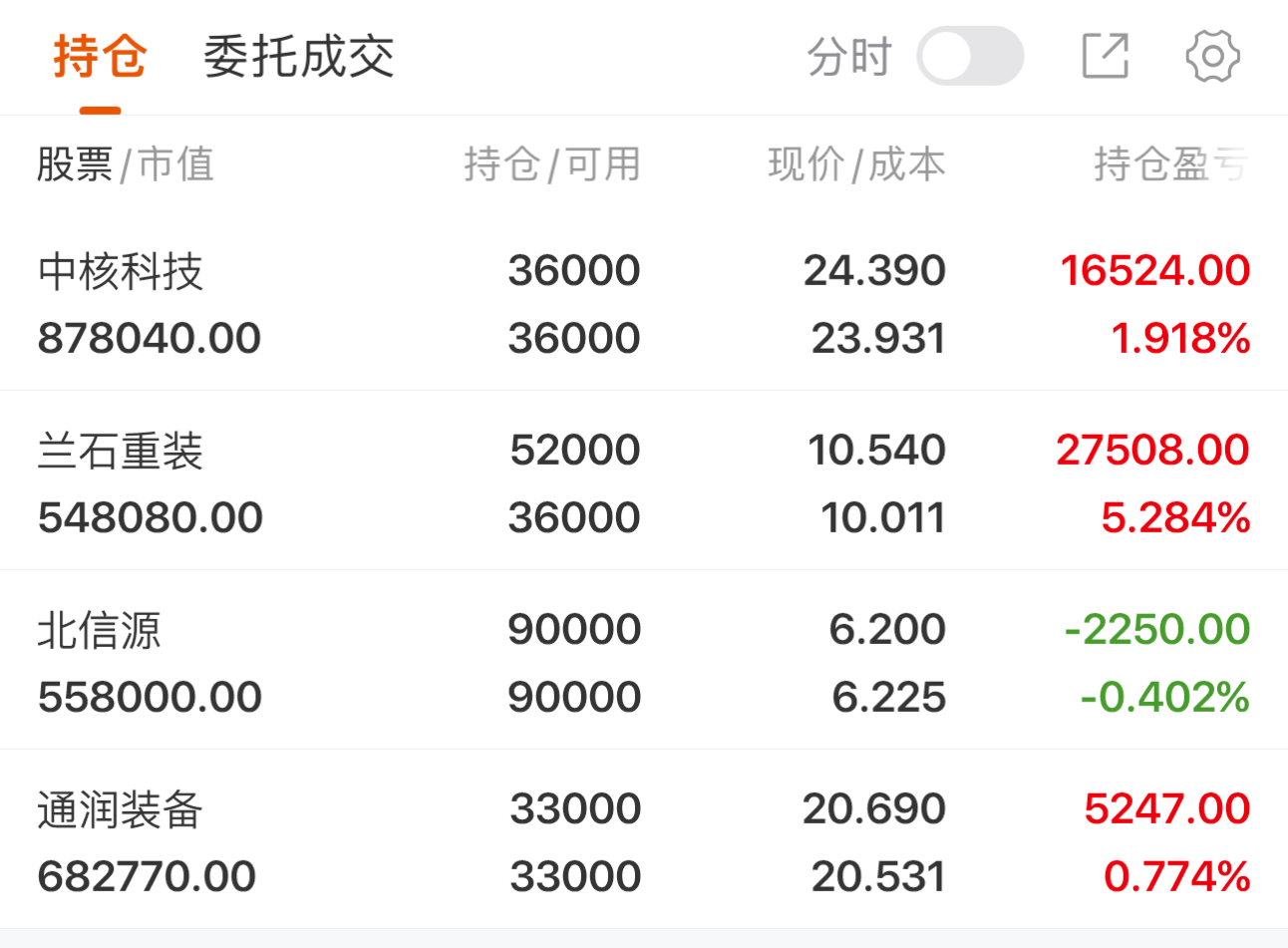 持仓计划: