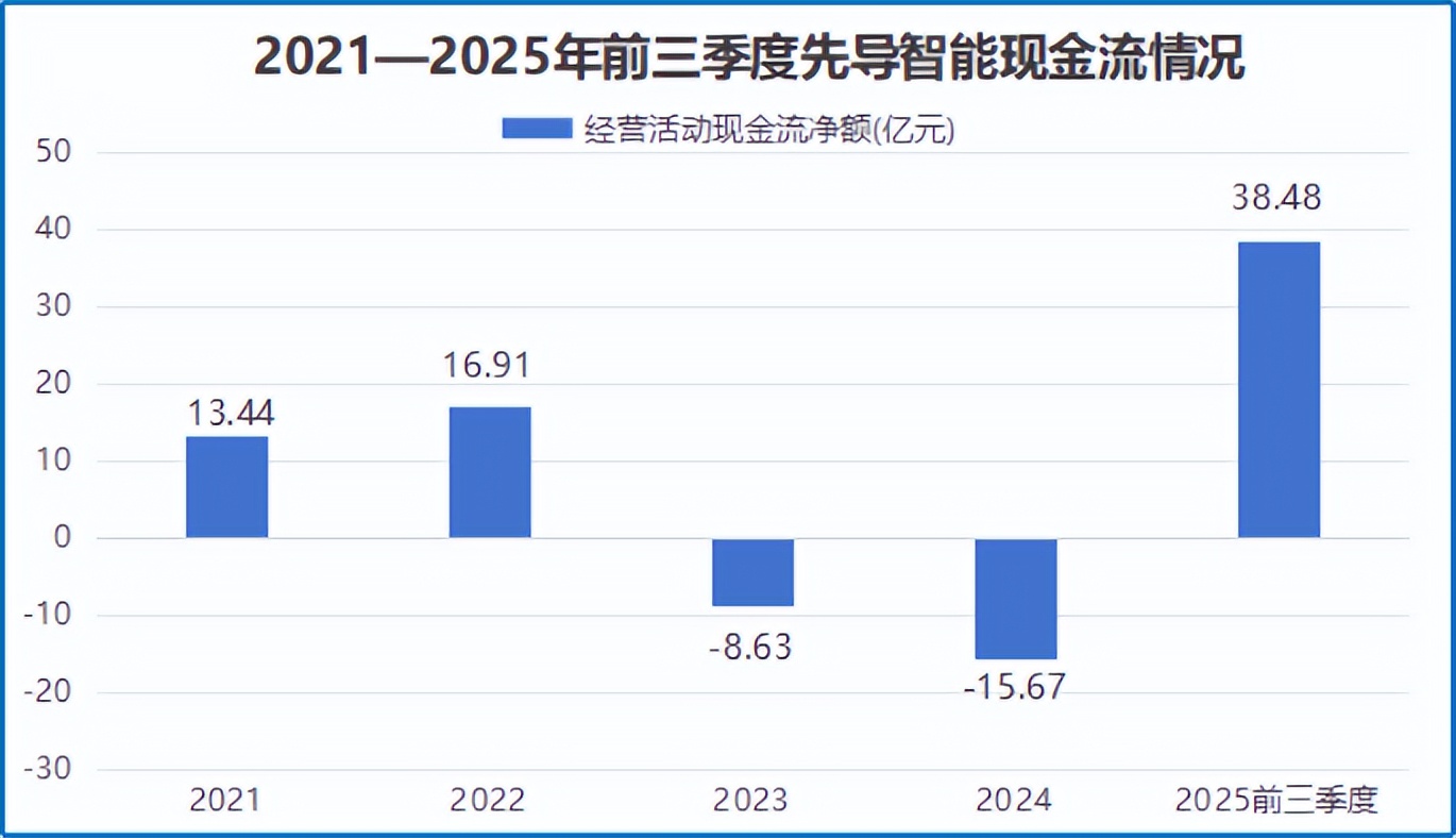 多招齐下,效果立竿见影。2025年前三季度,先导智能的经营性现金流净额达38.5亿,终于实现扭负为正。