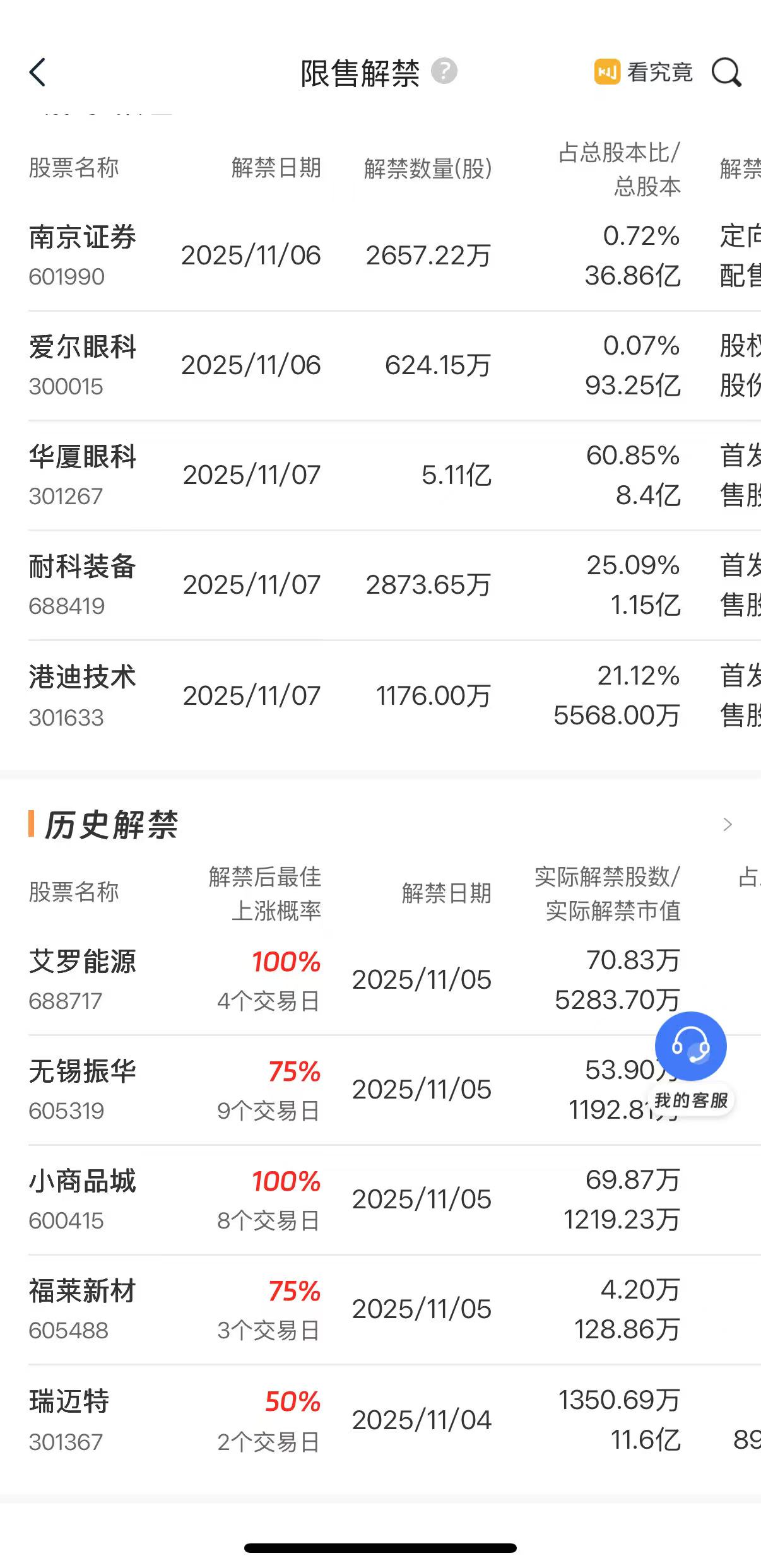 今天市场解禁的有5家,解禁一般会增加股份的流通,能承接住就有好机会,而且在没到发