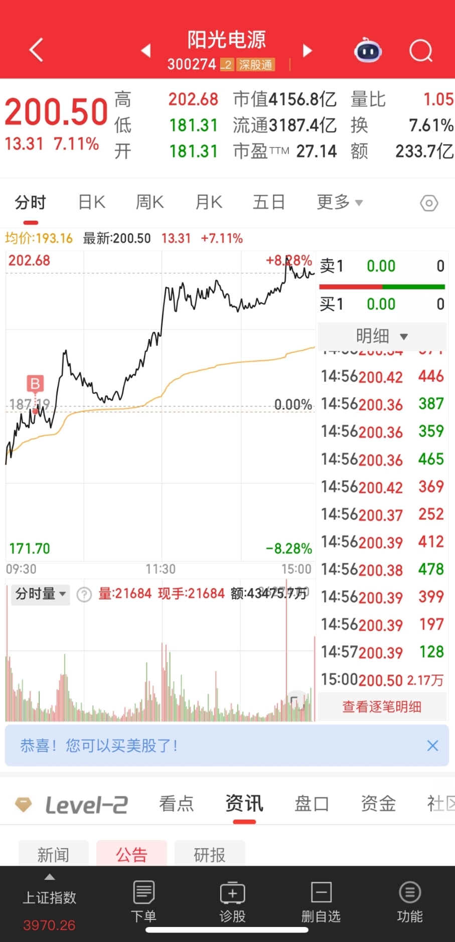记录每一天30万炒家(第77天)星期五、目前53.8安泰科技继续持有阳光电源今天