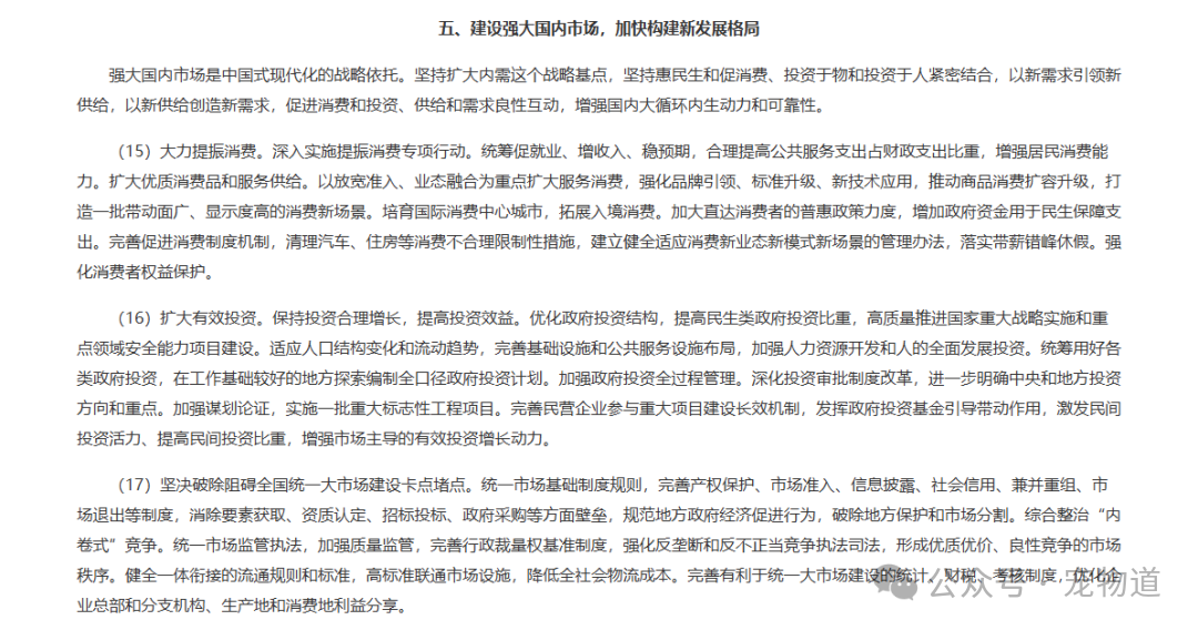 规划将“坚持扩大内需这个战略基点”置于重要位置,强调“以新需求引领新供给,以新供给创造新需求”,并要“大力提振消费”、“破除阻碍全国统一大市场建设的卡点堵点”。