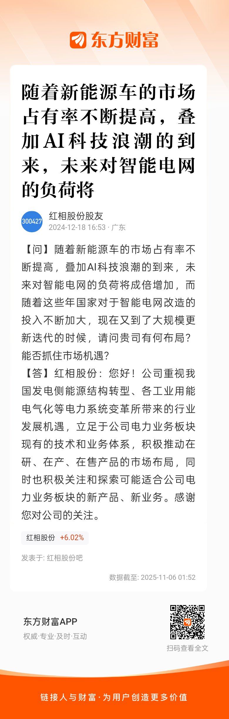 随着新能源车的市场占有率不断提高,叠加AI科技浪潮的到来,未来对智能电网的负荷将成倍增加,而随着这些年国家对于智能电网改造的投入不断加大,现在又到了大规模更新迭代的时候,请问贵司有何布局?能否抓住市场机遇?