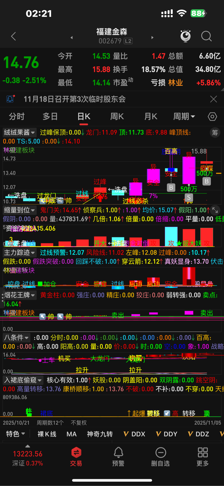 福建金森,前天近涨停板位置附近出清,昨天回踩不破尾盘再度买入,只要海峡西岸概念不