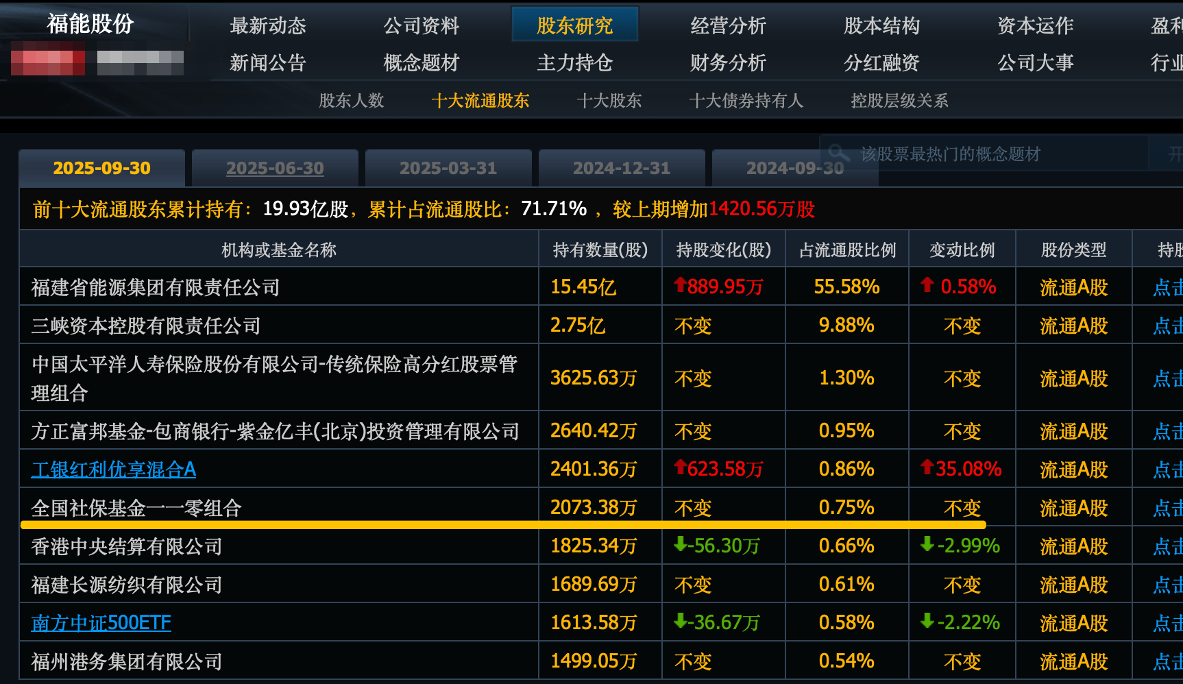 社保基金110组合重仓2073万股,直接重仓成第六大股东。