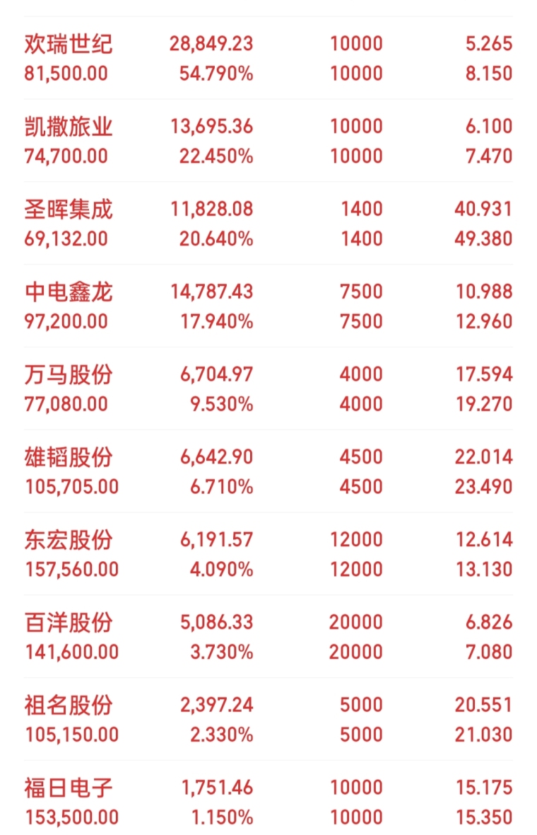 目前持仓:东宏股份,博云新材,圣晖集成,华胜天成,百洋股份,道明光学,雄韬股份,欢瑞世纪,祖名股份,中电鑫龙,万马股份,南京公用,凯撒旅业,福日电子