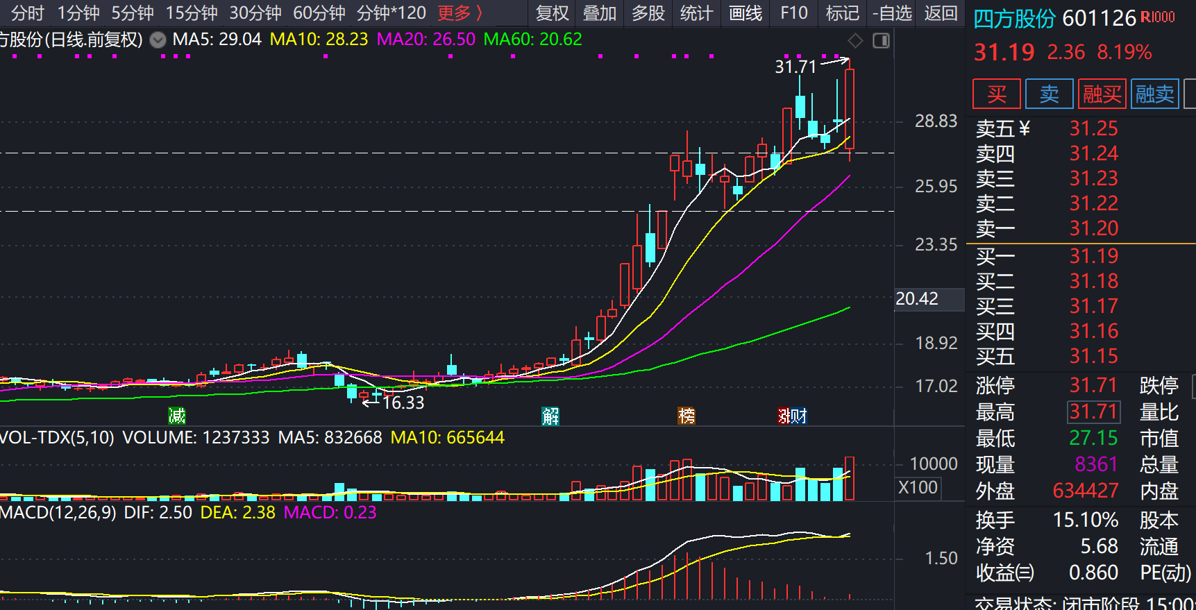【个股技术分析】四方股份,昨日盘中创历史新高,突破了震荡区,趋势向上,继续持股待