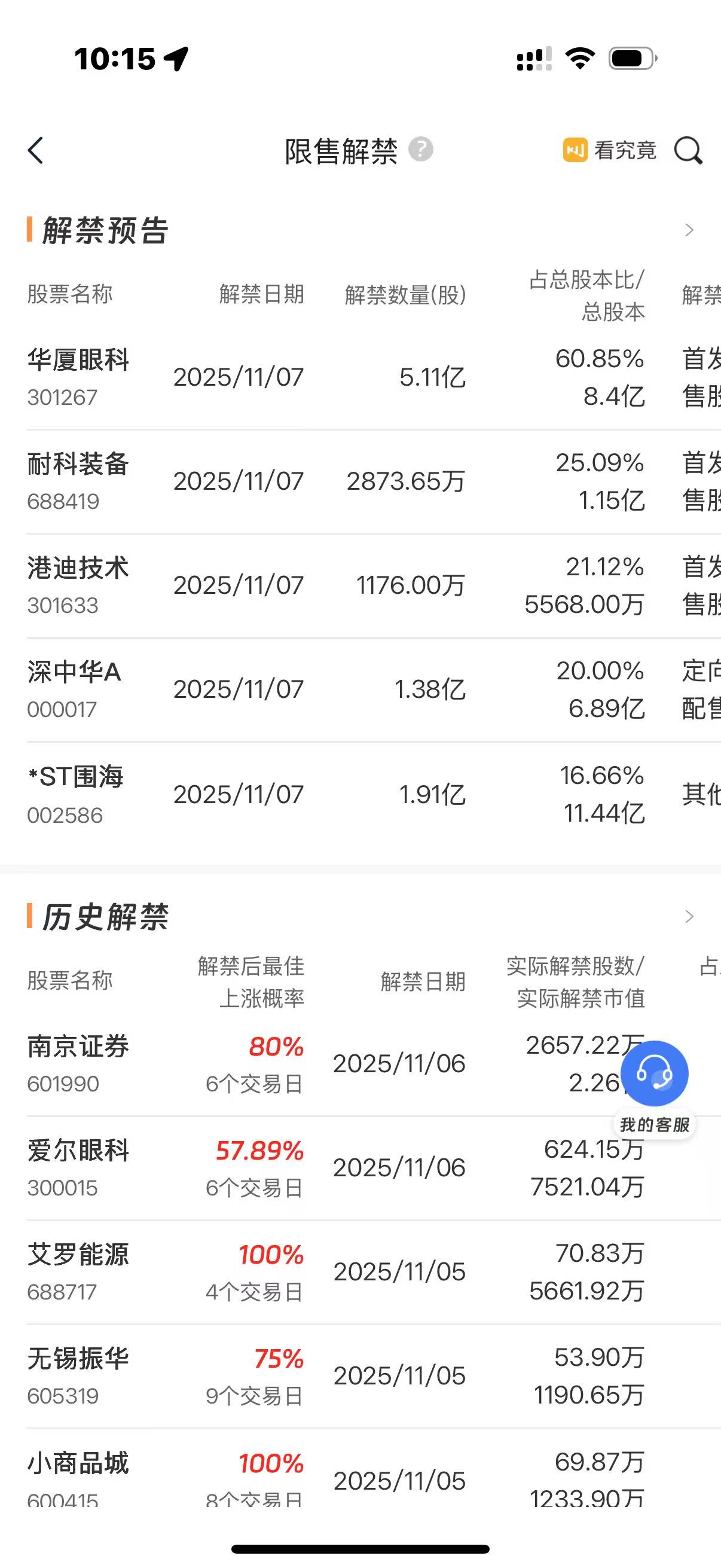 今日市场只有两家公司解禁,解禁数额都不大,而且历史对于流通股的消化还算好的,但还是那句话,没有到发行价这些股东卖不了,不过明天的解禁就多了,要有好多家$南京证券(SH601990)$ $爱尔眼科(SZ300015)$ $华厦眼科(SZ301267)$