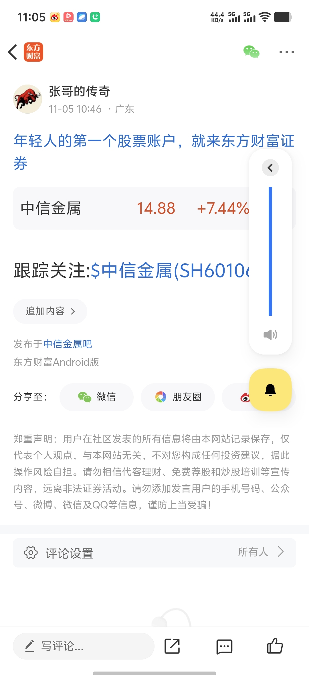 温馨提示: 1.根据《证券法》规定,禁止编造、传播虚假信息或者误导性信息,扰乱证券市场;2.用户在本社区发表的所有资料、言论等仅代表个人观点,与本网站立场无关,不对您构成任何投资建议。用户应基于自己的独立判断,自行决定证券投资并承担相应风险。《东方财富社区管理规定》