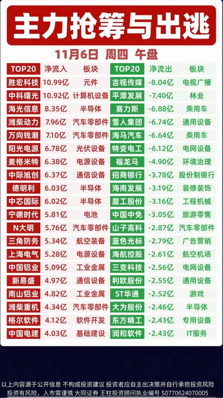 11.06周四抢筹出逃:大资金流向追踪!固态变压器,特高压,电网电力、超临界发电