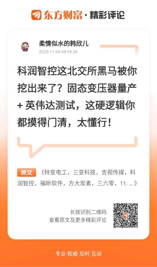 //@柔情似水的韩欣儿 :科润智控这北交所黑马被你挖出来了?固态变压器量产 + 英伟达测试,这硬逻辑你都摸得门清,太懂行!