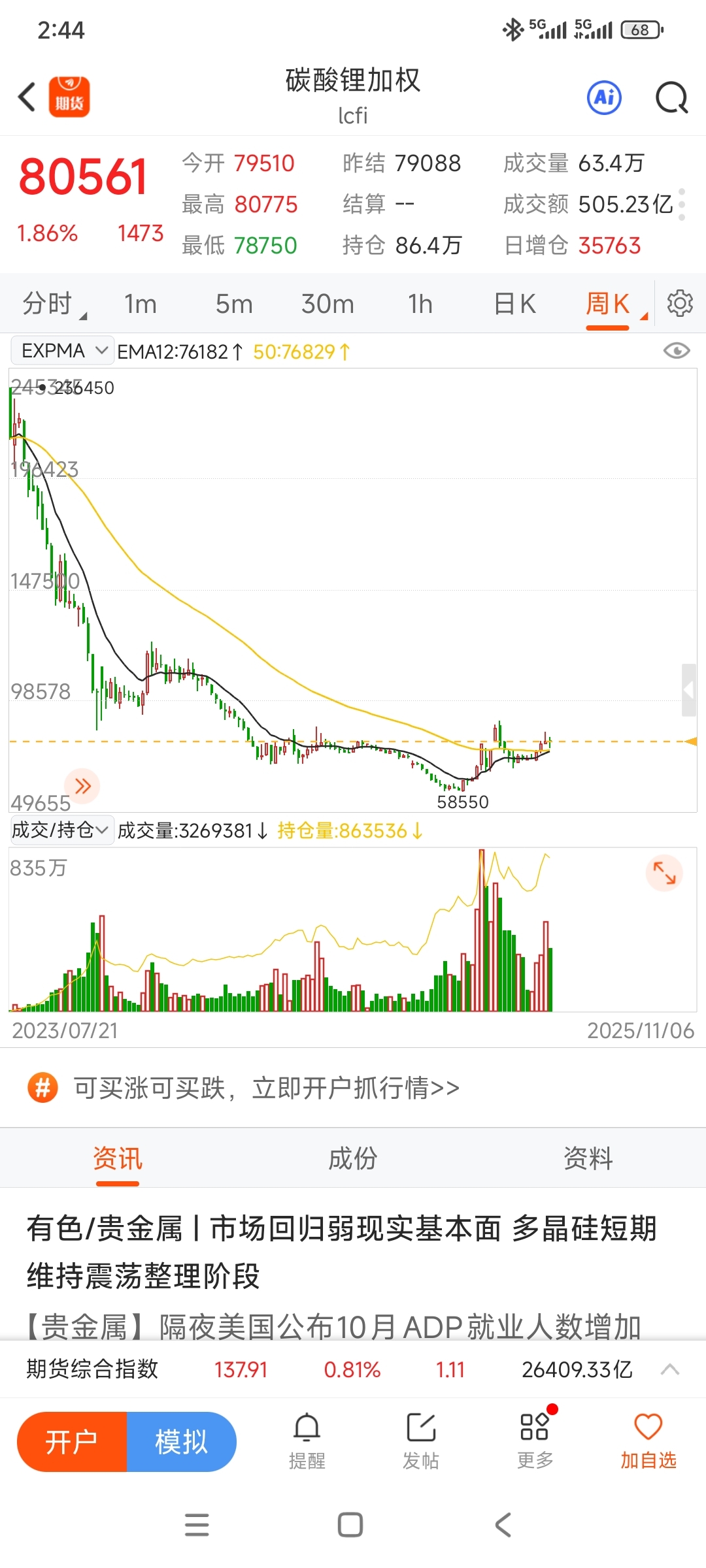 $碳酸锂加权(EFI|lcfi)$ 周线大反转,干吧