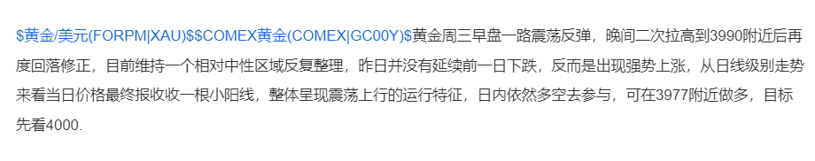 黄金3979多行情走出3998,已经来到我们看的目标位置4000左右,这时间换空间属实没白浪费,在这里有19个点也是可以离场的,还想持有的老规矩。$黄金/美元(FORPM|XAU)$$COMEX黄金(COMEX|GC00Y)$