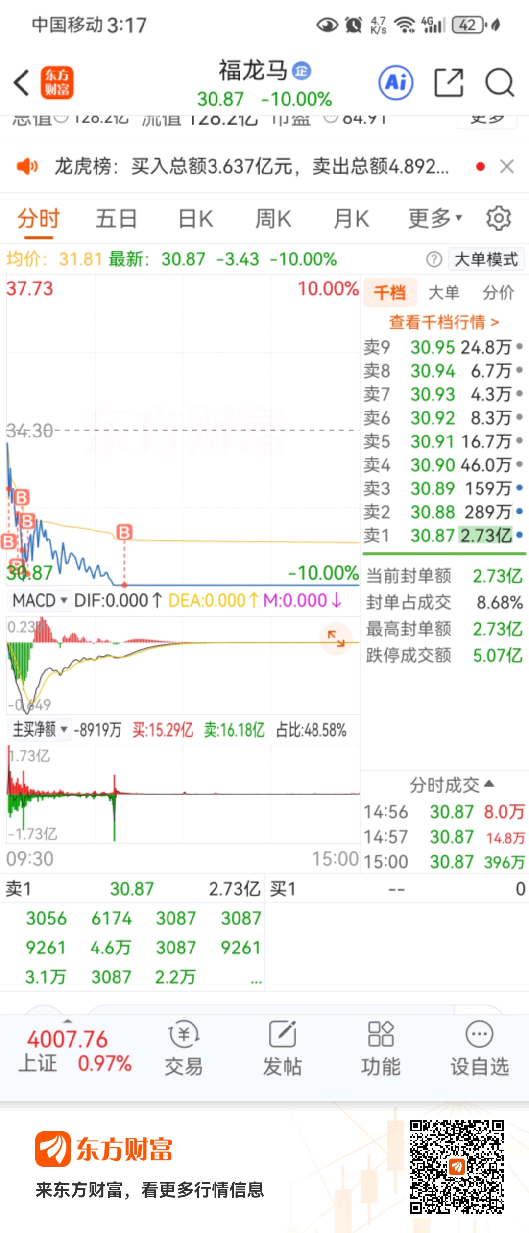 跌停板吃了五个亿的筹码,散户胃口没那么大。
