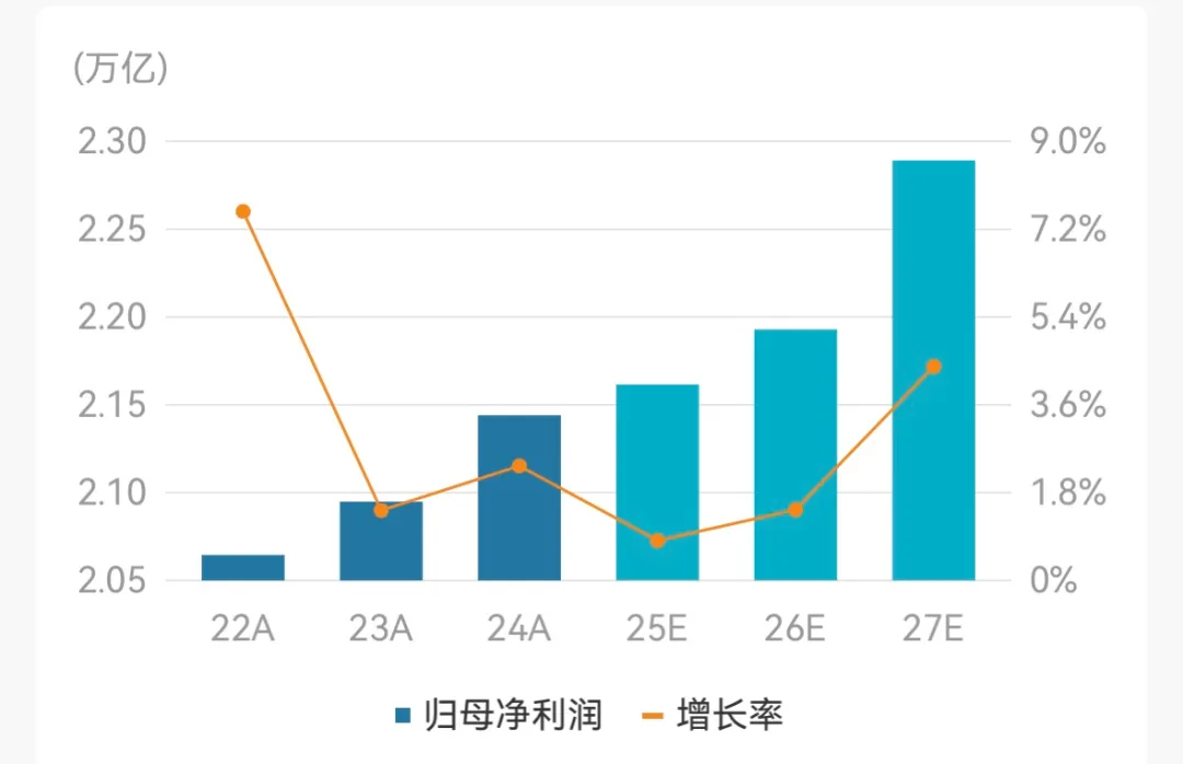 Wind盈利预测显示,中证银行归母净利润在2025-2027年将重回正增长区间。