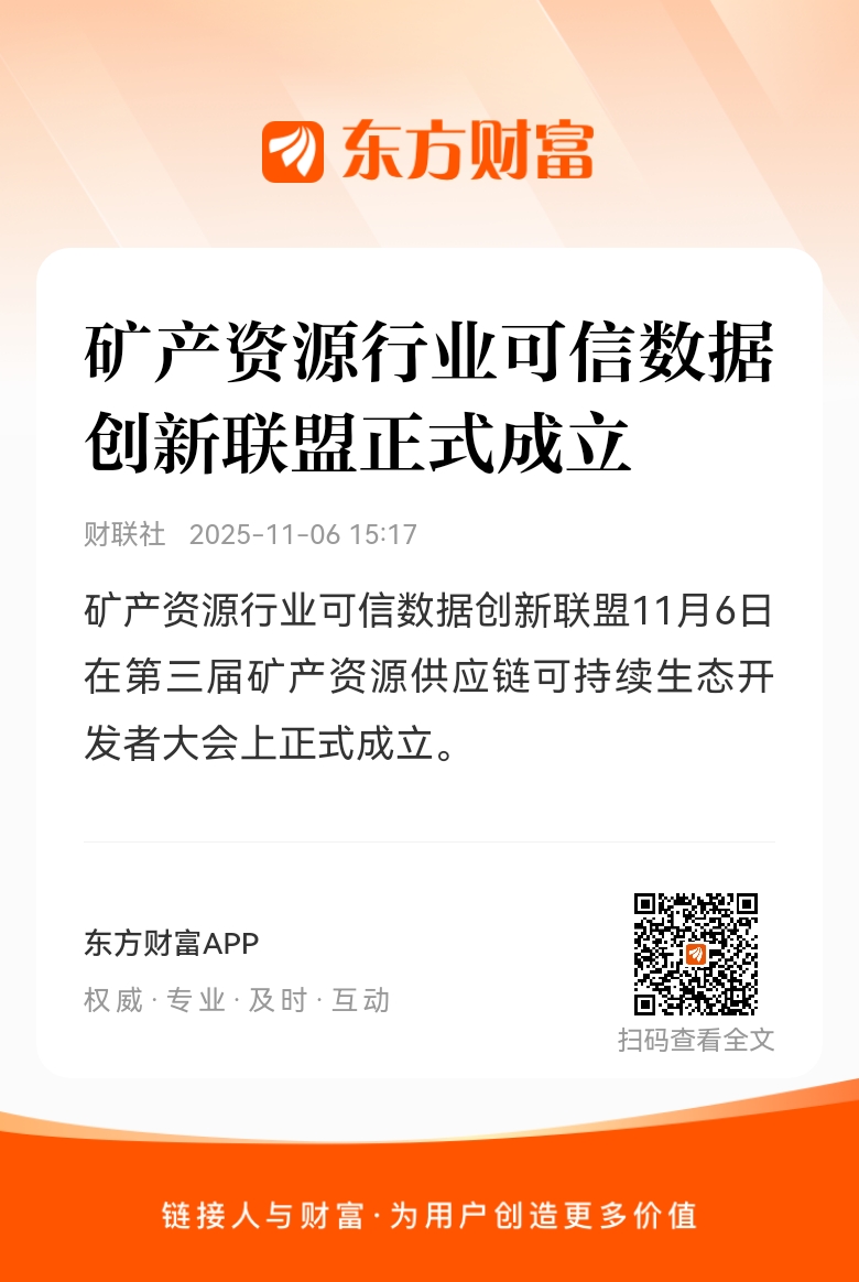 矿产资源行业可信数据创新联盟11月6日在第三届矿产资源供应链可持续生态开发者大会上正式成立。联盟由中国矿产资源集团发起,秉承共建、共享、共治、共赢价值理念,充分发挥联盟单位在产业链供应链的创新引领作用,共建矿产资源行业可信数据生态,实现优势互补、合作共赢,推动矿产资源行业向高端化、智能化、绿色化迈进。