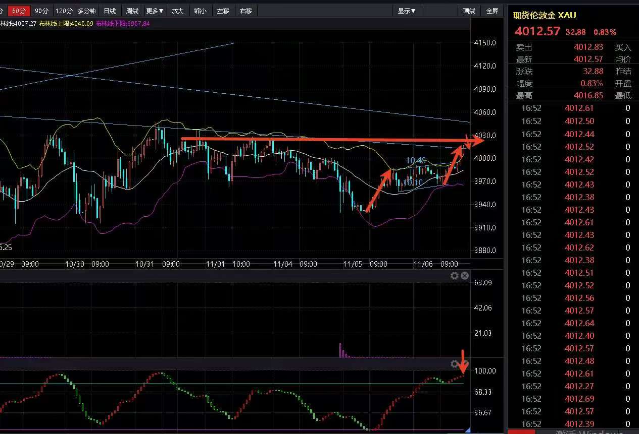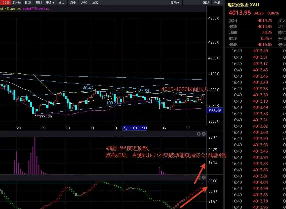 今天白天多单成功止盈在4015一线,今天欧盘到思路,目前2小时震荡下跌通道压力位
