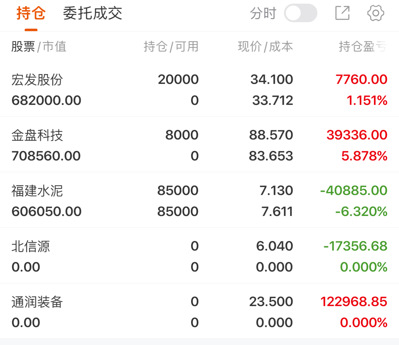 持仓计划:
