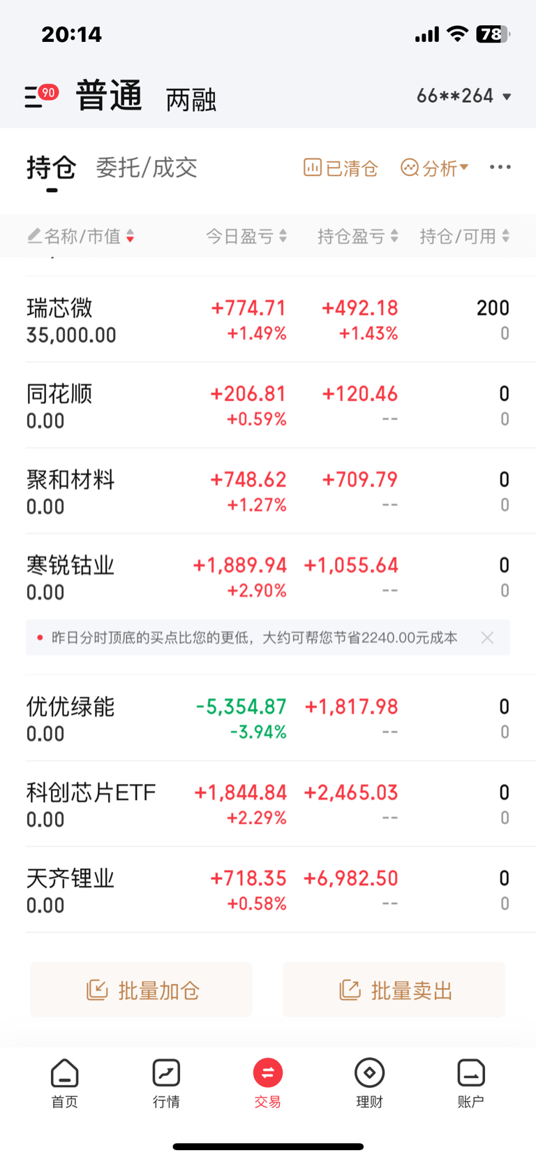 下面是今天的持仓