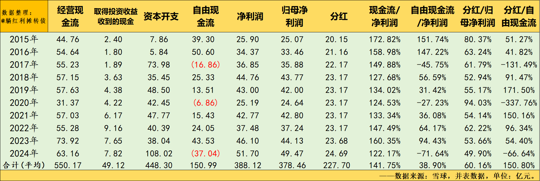 (注,为方便统计,表格中用现金流量表中“购建固定资产、无形资产和其他长期资产支付的现金”作为企业的资本开支数据,考虑到宁沪的股权投资和其他金融投资数额比较大,这部分资产产生的股利和利息收入实质上也构成了现金流入,所以把“取得投资收益收到的现金”也纳入现金流计算。)