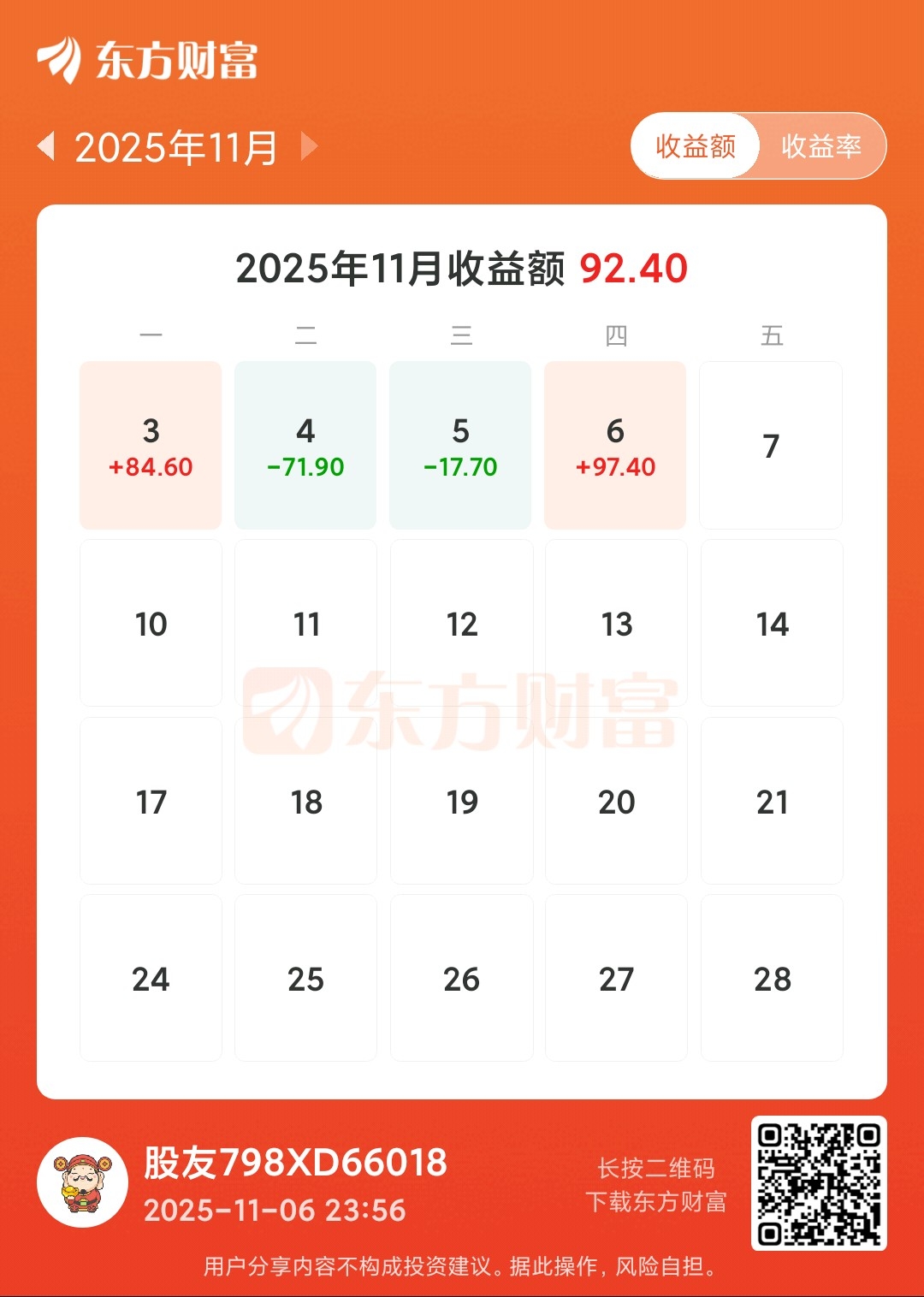 今天赚97.40元