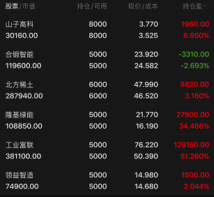 - 领益智造(002600):14.980元,+2.46%(终于发力,爽!)