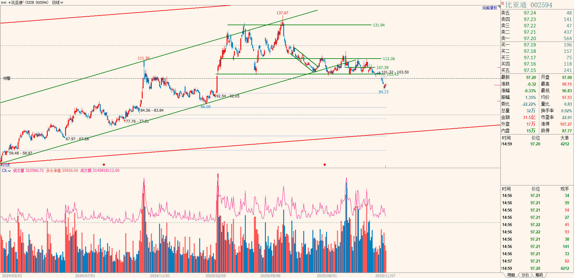 技术上来说,当前确实有抄底的机会,轻仓博个反弹未尝不可,止损放在前低94.73处。